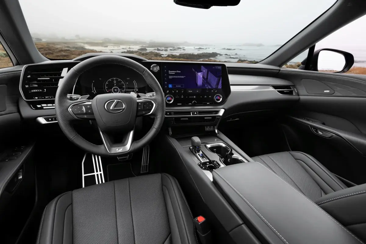 Lexus Interface with dual displays (up to 14-inch touchscreen), wireless Apple CarPlay/Android Auto, and "Hey Lexus" voice assistant